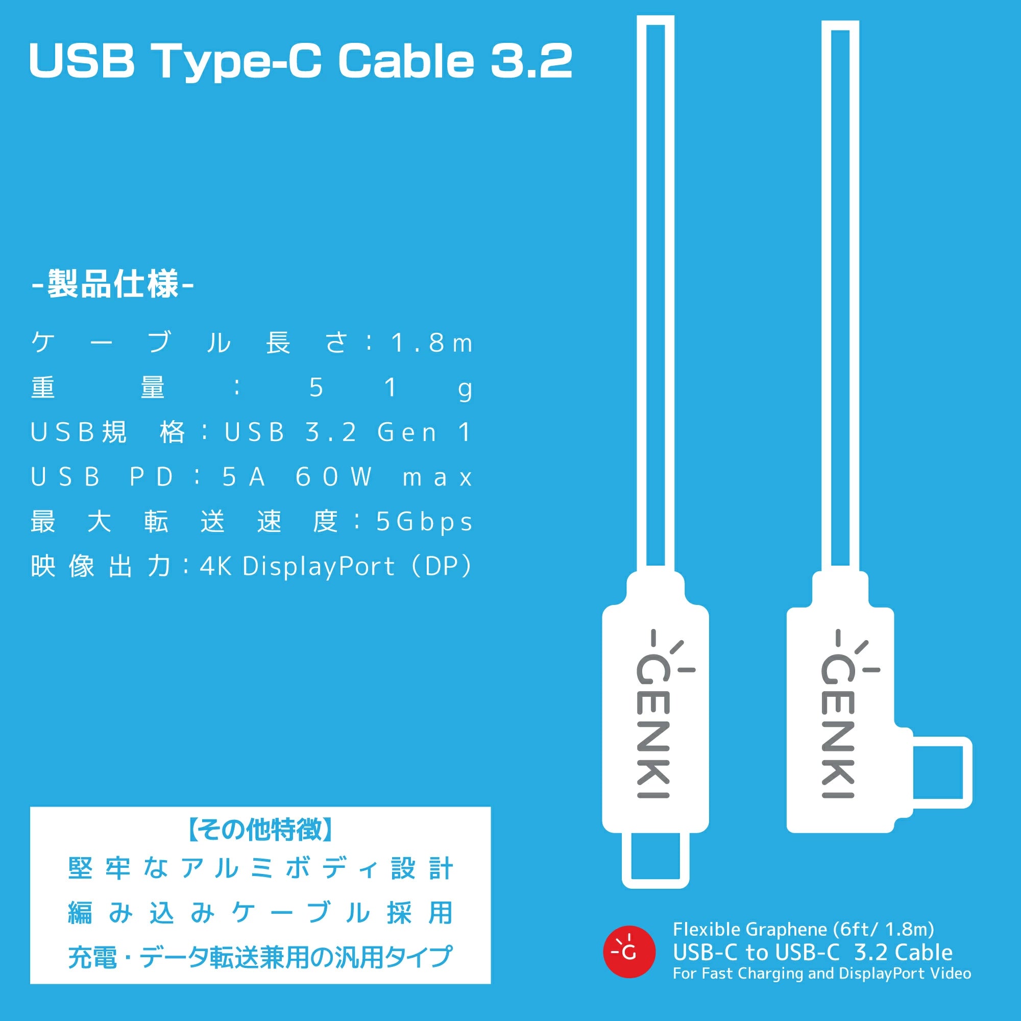 | その他特徴 | 堅牢なアルミボディ設計、編み込みケーブル採用。充電・データ転送兼用の汎用タイプ。 |